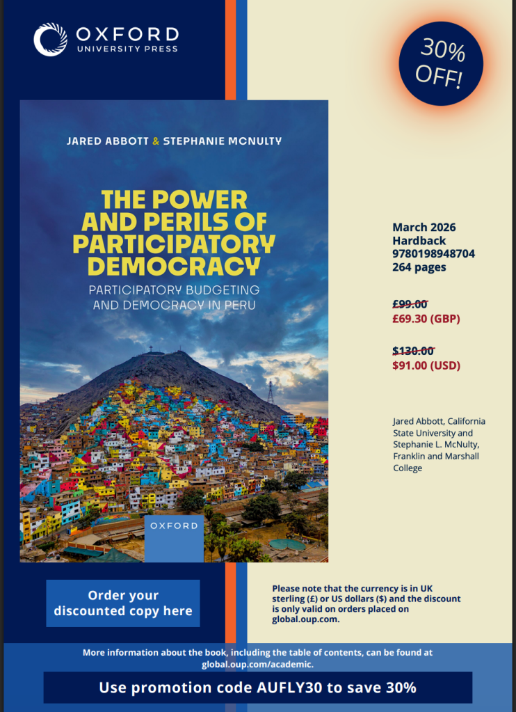 The Power and Perils of Participatory Democracy: Participatory Budgeting and Democracy in Peru is out!